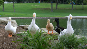 Sometimes we will visit St. Ferdinand Park to ride our bikes or do a little fishing in the pretty little lake but on a recent Sunday afternoon, Rissy and I went on a camera expedition. We brought some stale bread to share with our feathered friends and this little group was especially interested and proved to be very photogenic. They were a varied group, almost a lesson in integration, and the overcast sky muted the landscape to provide a good background for their contrasting colors.